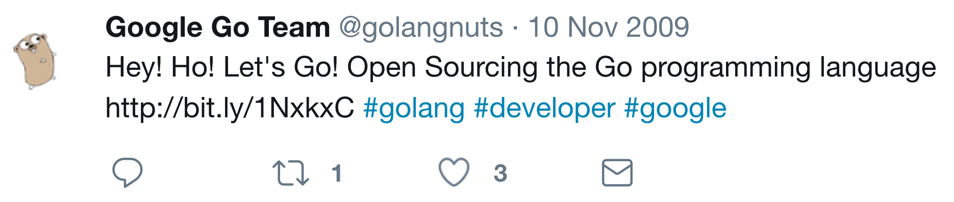(For more about these goals, see Rob Pike’s 2012 article “Go at Google: Language Design in the Service of Software Engineering” and my GopherCon 2015 talk “Go, Open Source, Community.”)