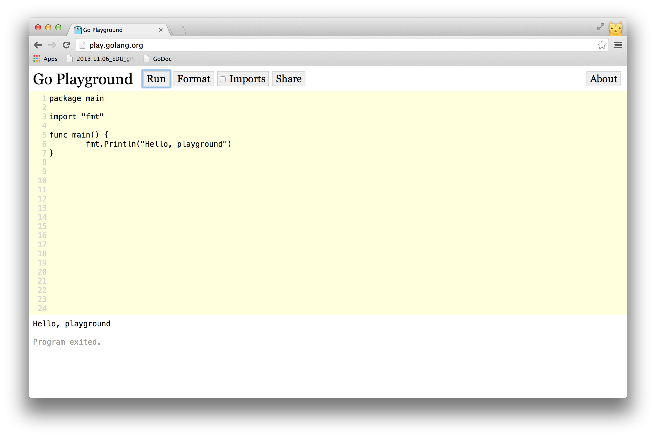 These slides: /talks/2014/playground.slide