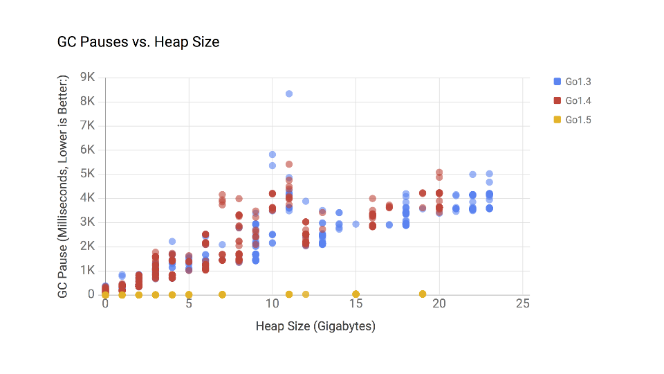 At QCon SF in November Rick Hudson gave an updated presentation which showed this comparison of Go 1.5 to the upcoming Go 1.6